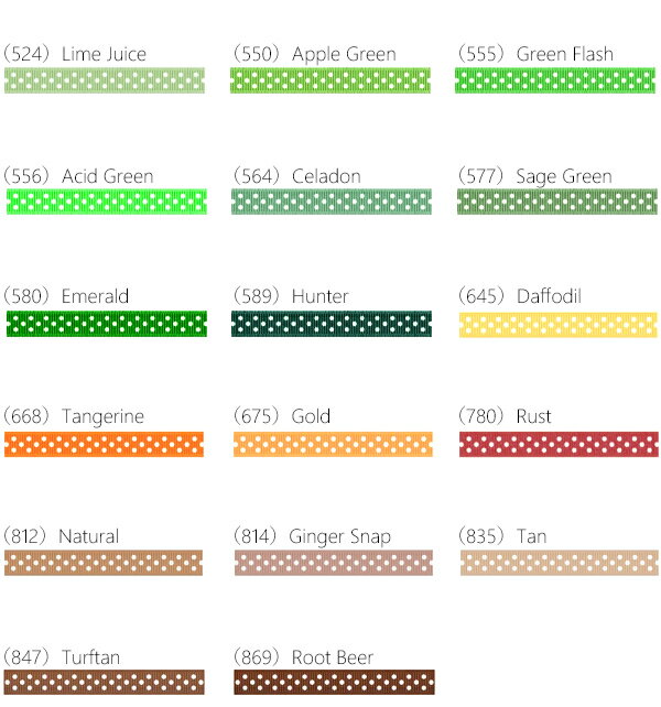 手芸用品、ラッピング用リボン、レトロテープなどアレンジ次第で使い方もいろいろ広がります! 3ページに分かれて全48色展開しています。