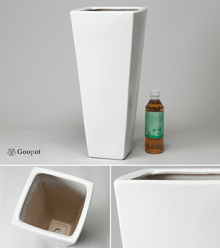 → 通常販売品はこちらこの訳あり品は、通常販売品よりお安くなっています 色ムラ・カケ・クボミ・ピンホール・釉薬の抜け・焼きヒビ・ゆがみなど 通常品として出荷できない商品を「わけあり」として販売します 「ワケあり」部分を気にしない方はお買得ですが、気にする方はご遠慮ください 「理由あり」の基準は、近くから見ると気になる点はあるけれど 少し(2、3メートル)離れて植物と一緒に見れば、気にならない程度とお考え下さい 置く向きによっては、全く気にならないものが多々あります ◎ 植物を引き立てるのに十分な役割を果たすレベルのものです(←重要) (写真は通常品と同じものを使用しています) 直径21cm 高さ49cm 口径17cm 底直径13cm 内高さ48cm 内底直径12cm (直径・口径は四角の1辺の長さです) 重さ : 約 3kg 容量 : 約 12リットル 色 : つや無の白 底穴 : 有 受皿は「別売」です ★