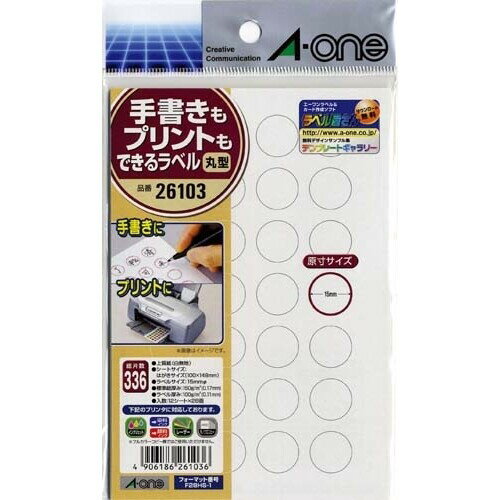 【1000円以上お買い上げで送料無料♪】エーワン 手書きもプリントもできる丸型15ミリ28 26103 - メール便発送