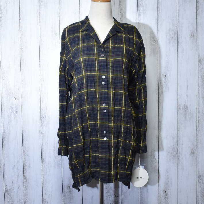 ウォッシャー加工の長袖チュニック丈ブラウスです。