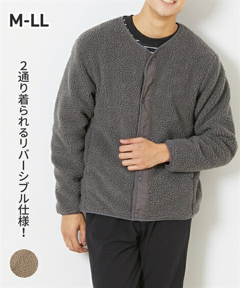 カーディガン メンズ 2通り着られる ボアフリース リバーシブル 長袖 キャメル/チャコール M/L/LL ニッセン nissen